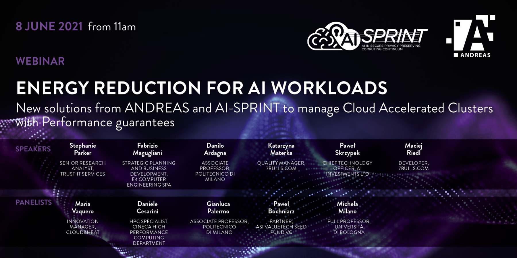 Finally, a panel discussion will highlight how we can achieve efficient and sustainable energy management in different context such as Data Centers, High Performance Computing systems and Artificial Intelligence.